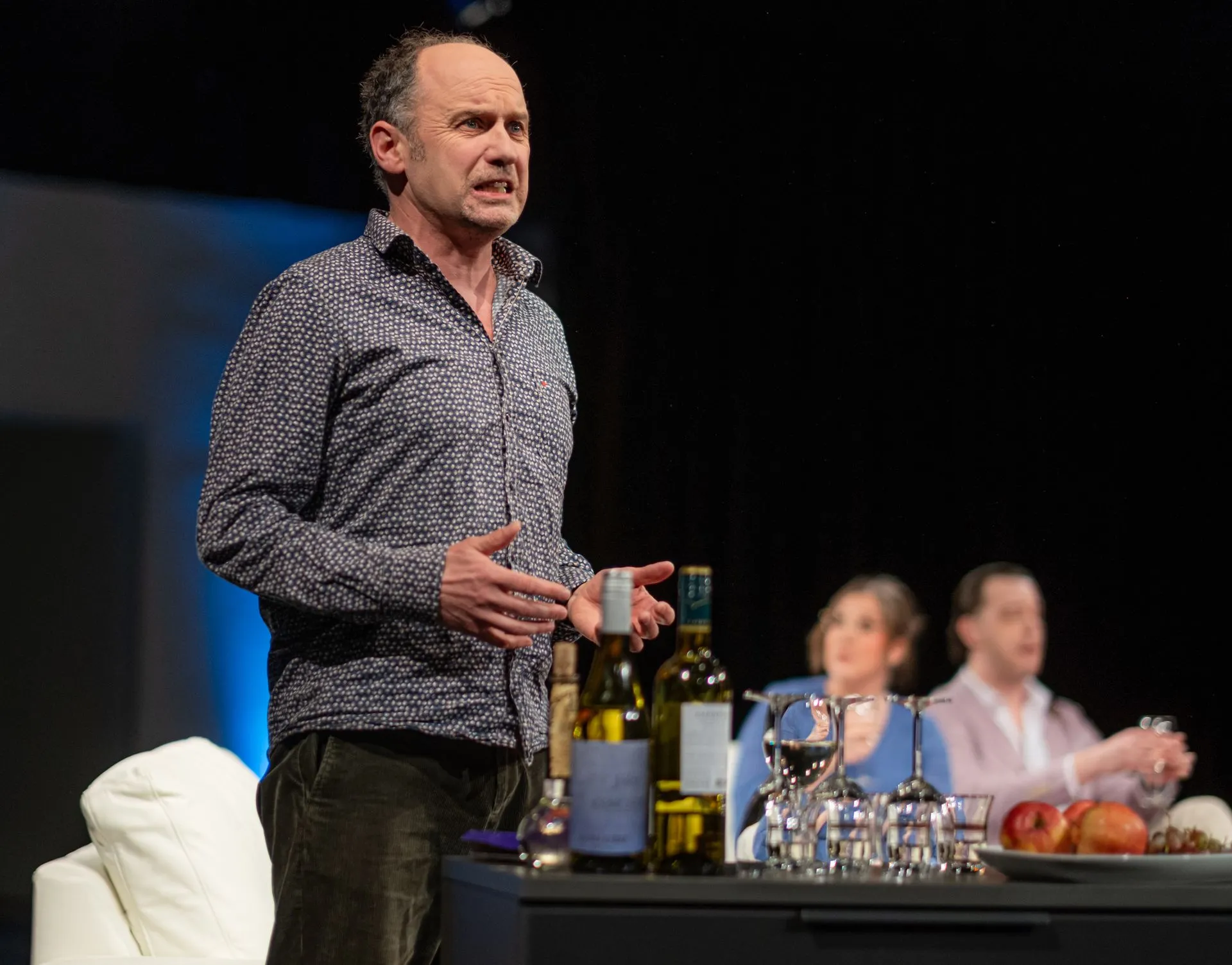 Rezas Stück wiederholt den Abend in drei Variationen – Drei Mal Leben. Drei Mal ringen die vier Protagonisten untereinander, mit sich selbst, ihren Egos, Ehen und Werten. Jedes Mal endet der Abend in einer Eskalation. Zwischen den Höhen galaktischer Halos und angestrengten Small-Talk-Versuchen kommt die Suche nach der eigenen Bedeutung zum Tragen, werden Ängste und Einsamkeit spürbar.