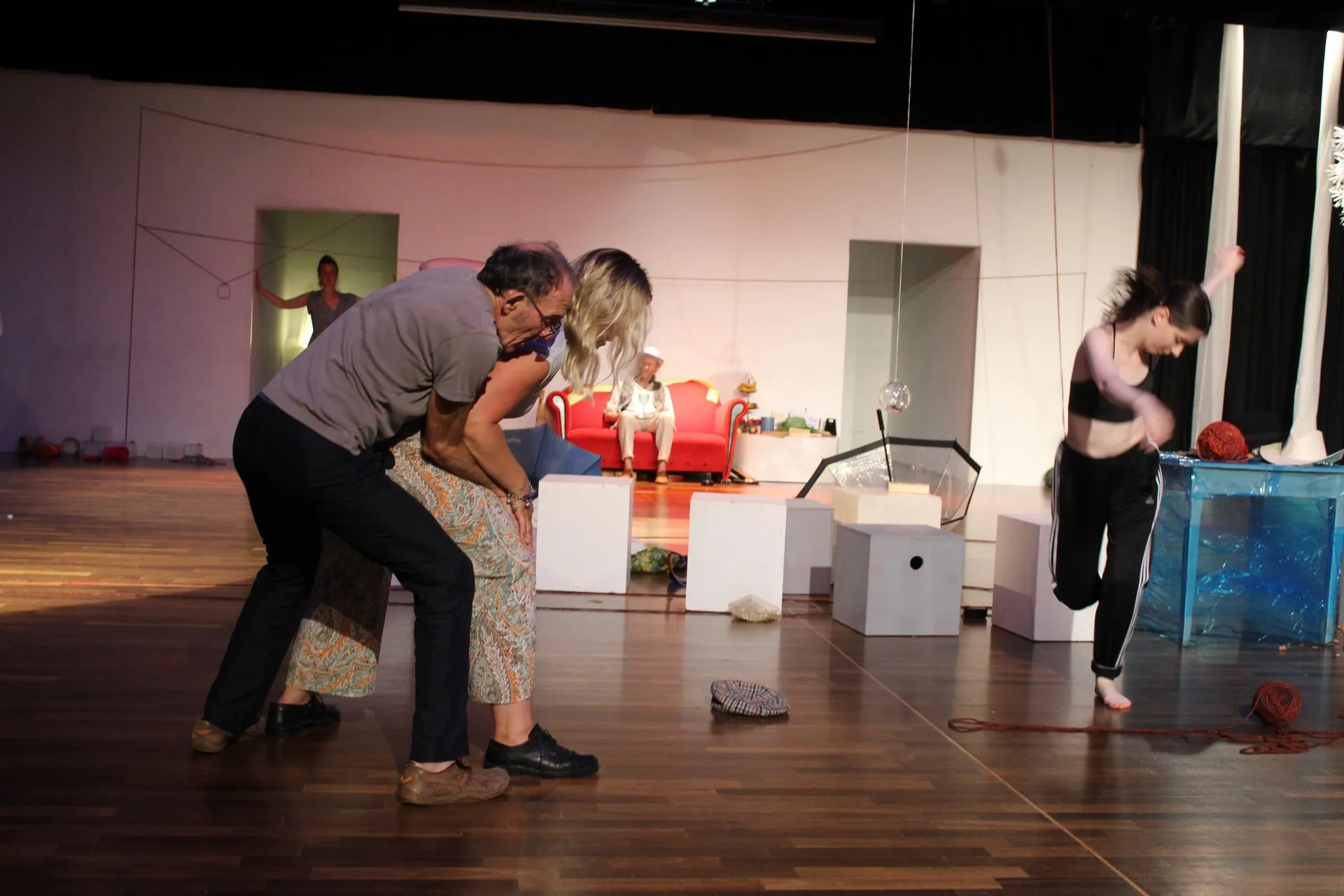 Die Regisseurin Romina Becker hat ein eigenes Theater-Spiel kreiert, ein Kaleidoskop an Räumen, mit Ecken und Kanten, verschiedensten Materialien, Stoffen, konkreten Aufgaben, typischen und untypischen Requisiten, Kostümen, Perücken und Schminkmöglichkeiten. Du entdeckst überraschende Details und bewegst dich zur sich stetig ändernden Klanginstallation. Eine von Becker komponierte Musik- und Geräuschcollage dient als Klangteppich und Impulsgeber zugleich. Wer sich ins Spiel wagt, findet verständliche Einladungen zu Bewegung und Spiel ebenso wie versteckte Anweisungen, die die Aktion am Laufen halten.