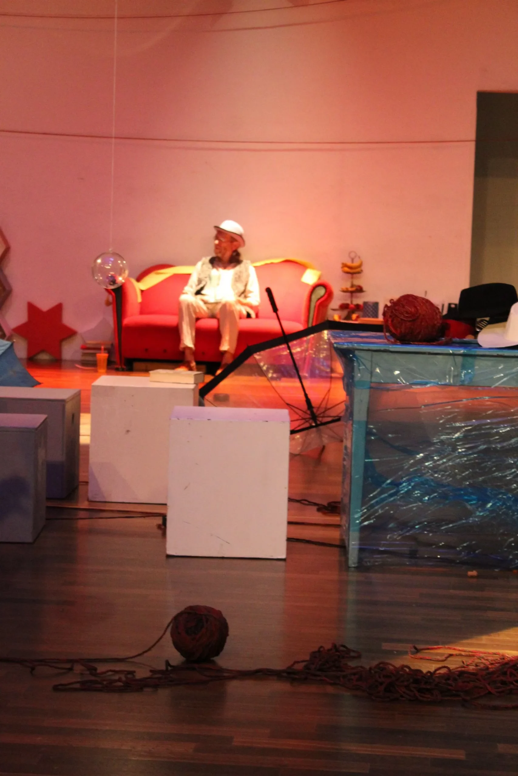 Welche Bilder und Erwartungen habe ich im Kopf, wenn ich den Begriff „Theater“ höre? Wie reagiere ich auf die Bühnensituation? Die interaktive Installation lädt ein, diese Bilder auftauchen zu lassen und auf unterschiedlichste Art zu hinterfragen.
