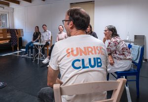 Wer bereits Michael Krauths Stücke „Bar aller Vernunft“ (2018) und „Nachts schwimmen die Krokodile“ (2024) gern gesehen hat, wird mit Sicherheit auch den Wortwitz und die charmante Tiefgründigkeit von „Sunrise Club“ mögen.